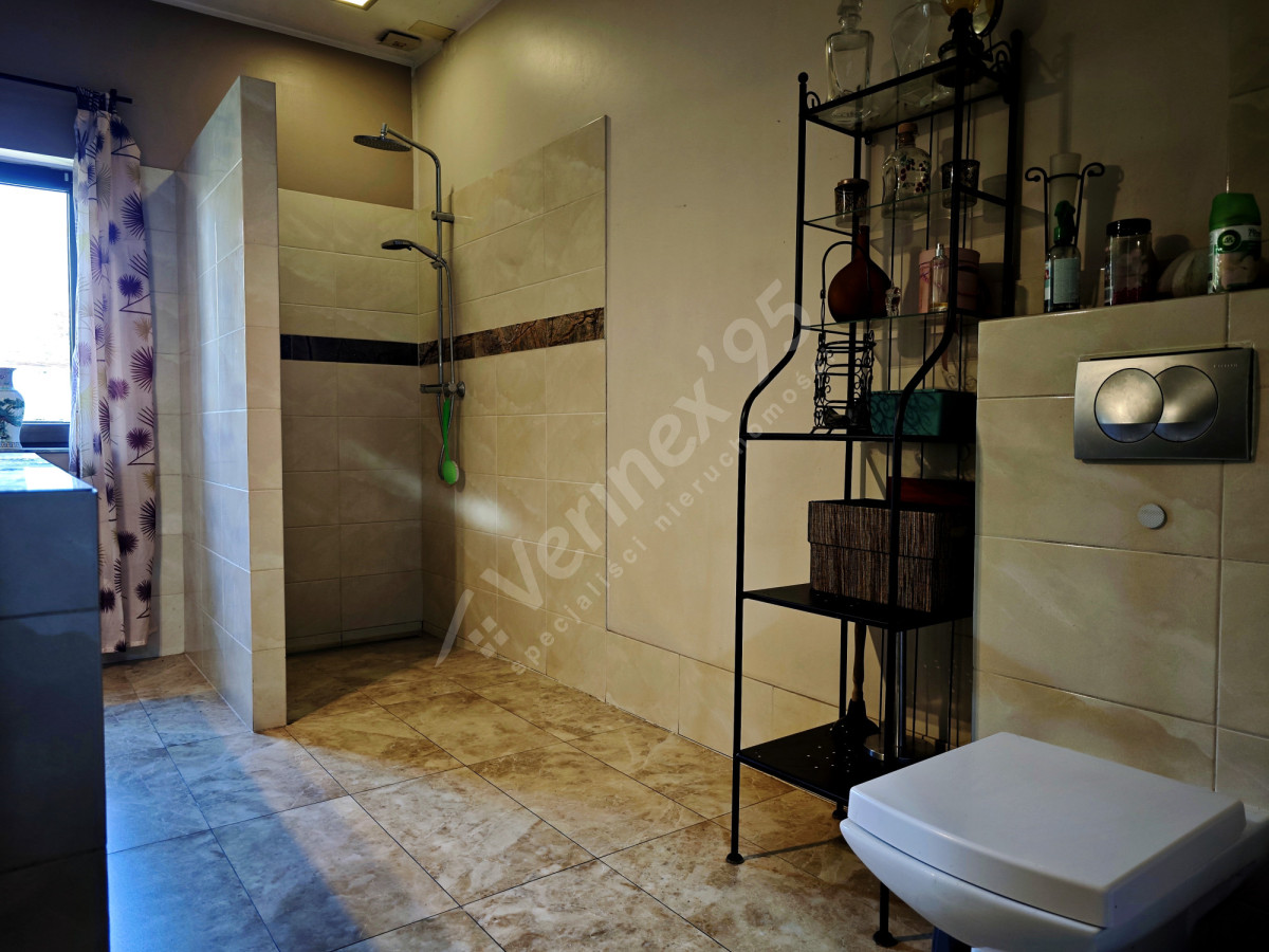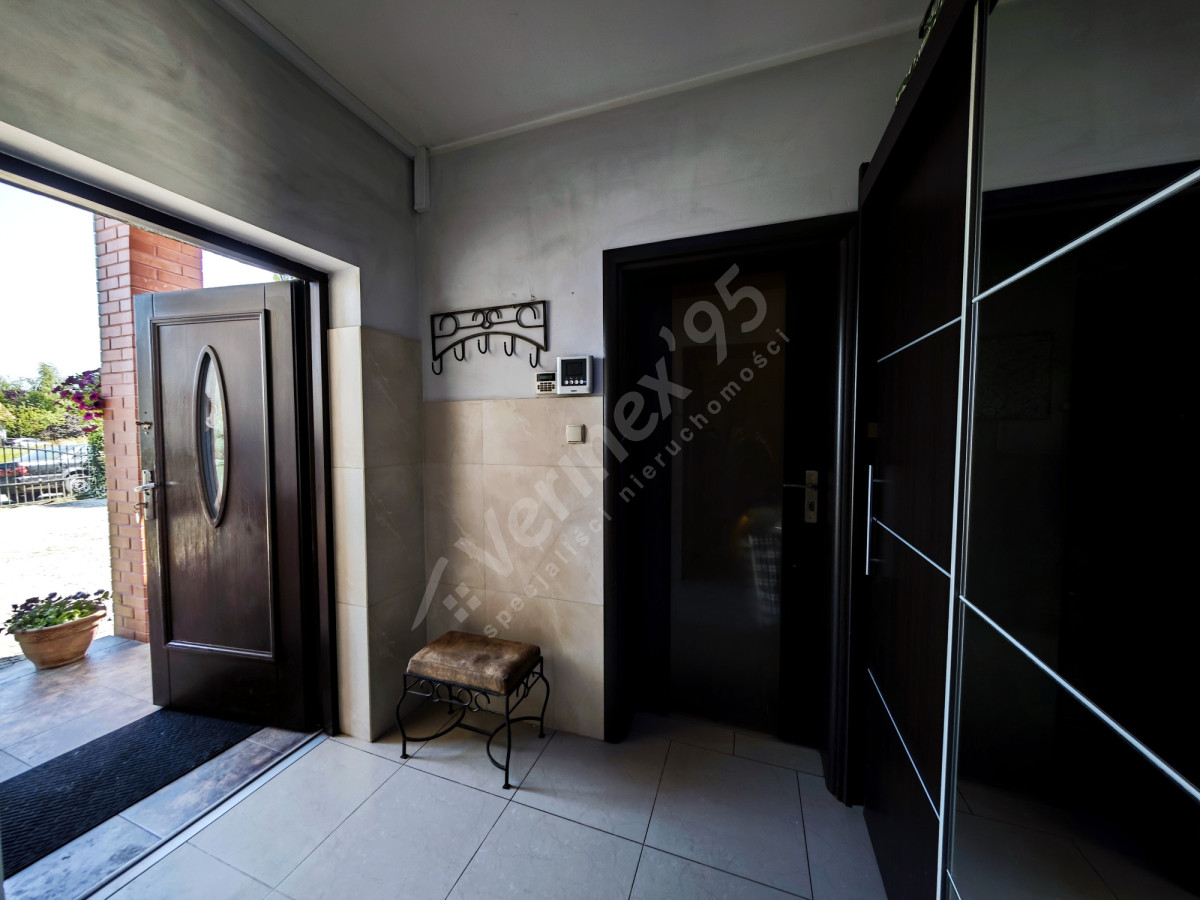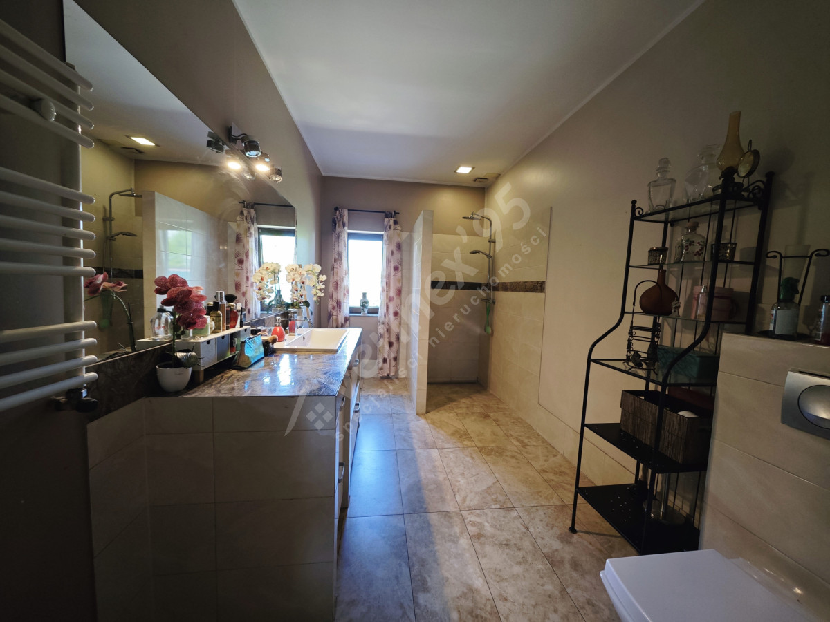 Nieruchomość zadbana z garażem w bryle budynku z bramą automatyczną. Podjazd wybrukowany granitem. Posesja ogrodzona z bramą wjazdową na pilota i wideofonem. Dla komfortu bezpieczeństwa w domu zainstalowano system alarmowy.