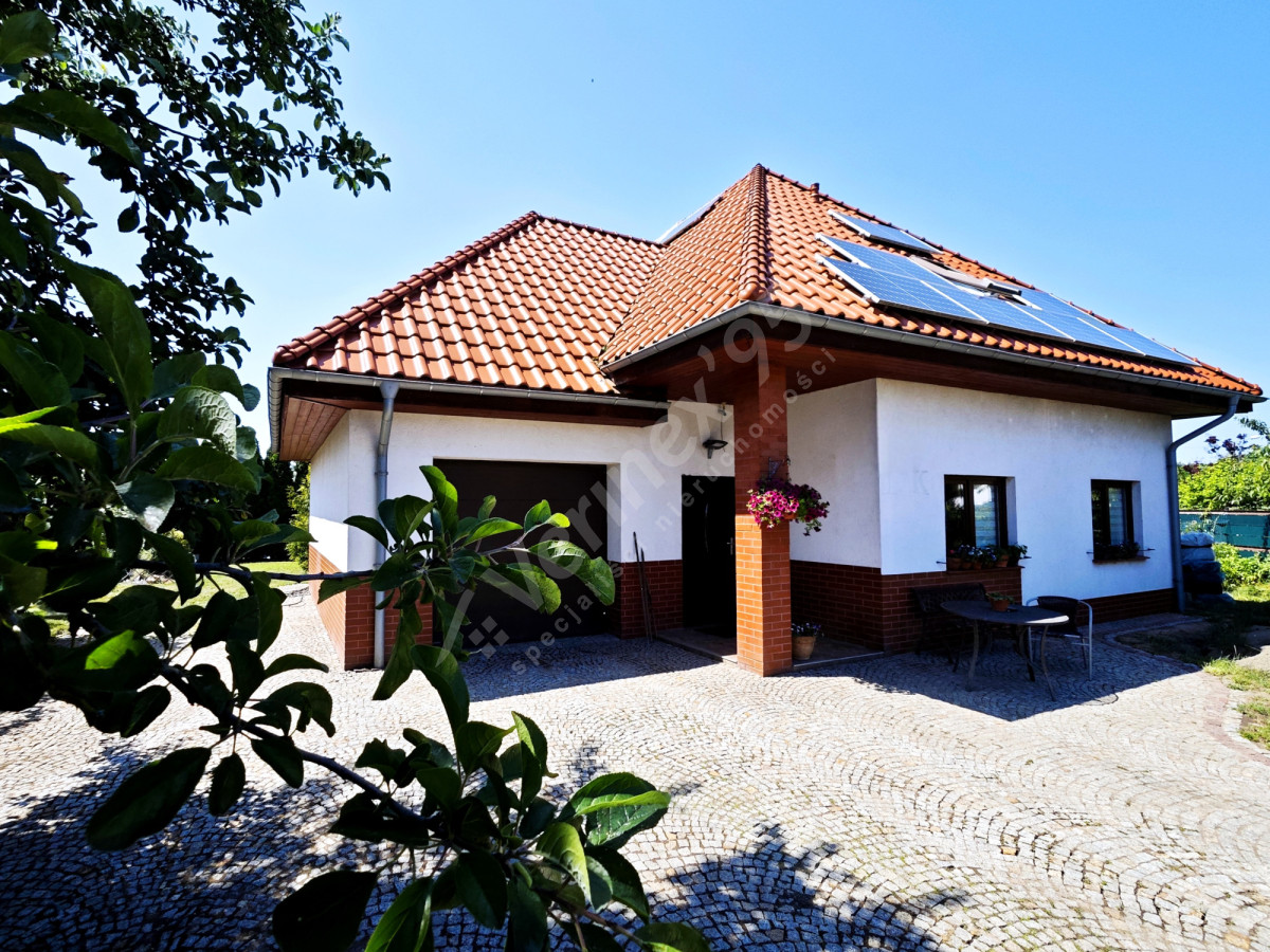 Dom zbudowany z najlepszych materiałów POROTHERM docieplony styropianem, na dachu dachówka ceramiczna oraz system fotowoltaiki odciążający budżet domowy.