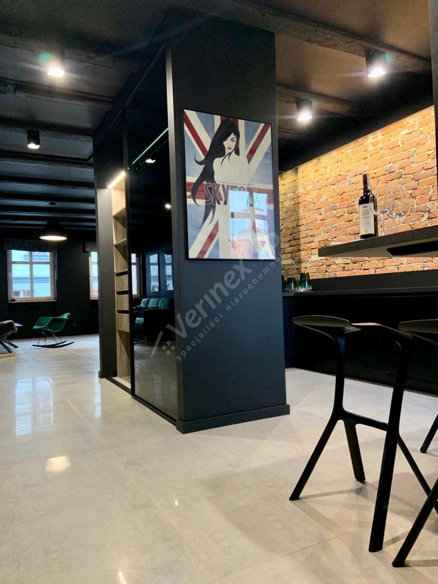 jeden z apartamentów jest przestronny i dwupoziomowy, oferujący unikalny charakter i funkcjonalność.
