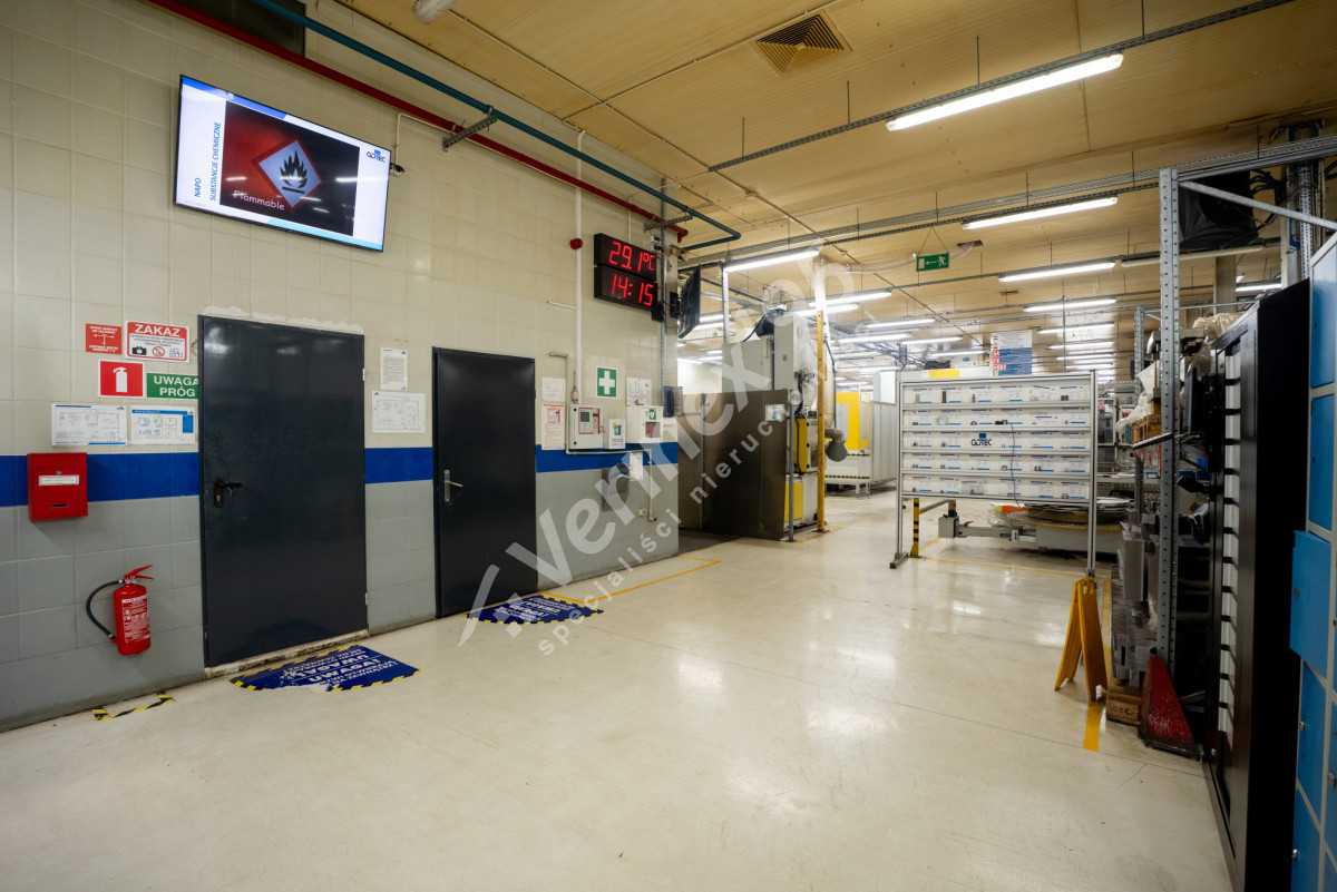 Budynek produkcyjno-magazynowo-biurowy o powierzchni użytkowej 2 164,32 m² (kubatura 13 637,54 m³), wybudowany w latach 2000-2004, następnie rozbudowany i dostosowany do funkcji produkcyjno-magazynowej z zapleczem biurowym. W budynku znajdują się m.in. szatnie, stołówka dla pracowników, sala konferencyjna oraz liczne pomieszczenia biurowe, z których część wyposażona jest w klimatyzację. Wysokość głównej hali wynosi 4 m, natomiast dodatkowej hali o powierzchni 500 m² - 6 m.