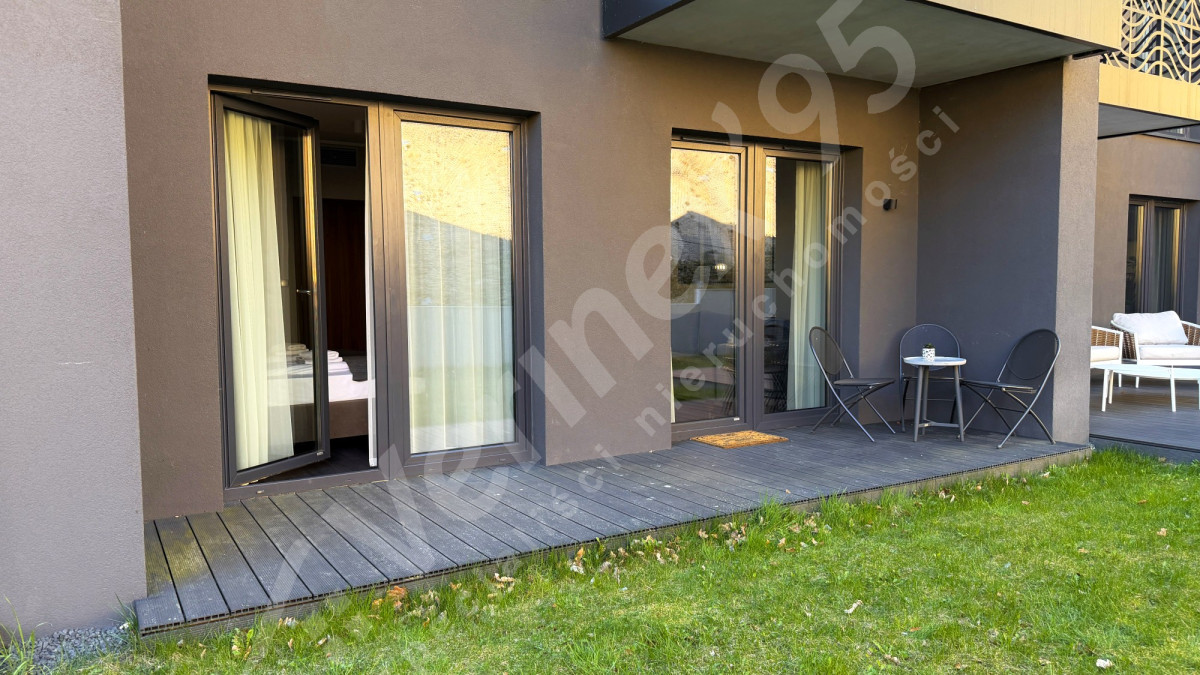 Dużym atutem apartamentu jest wyjście na prywatny taras z zieloną częścią (trawką), co daje dodatkową przestrzeń do relaksu. Lokal usytuowany jest od spokojnej strony, co zapewnia ciszę i odpoczynek z dala od zgiełku. Jednocześnie ekspozycja sprawia, że mieszkanie nie nagrzewa się nadmiernie w ciągu dnia — co znacząco podnosi komfort użytkowania w cieplejszych miesiącach.