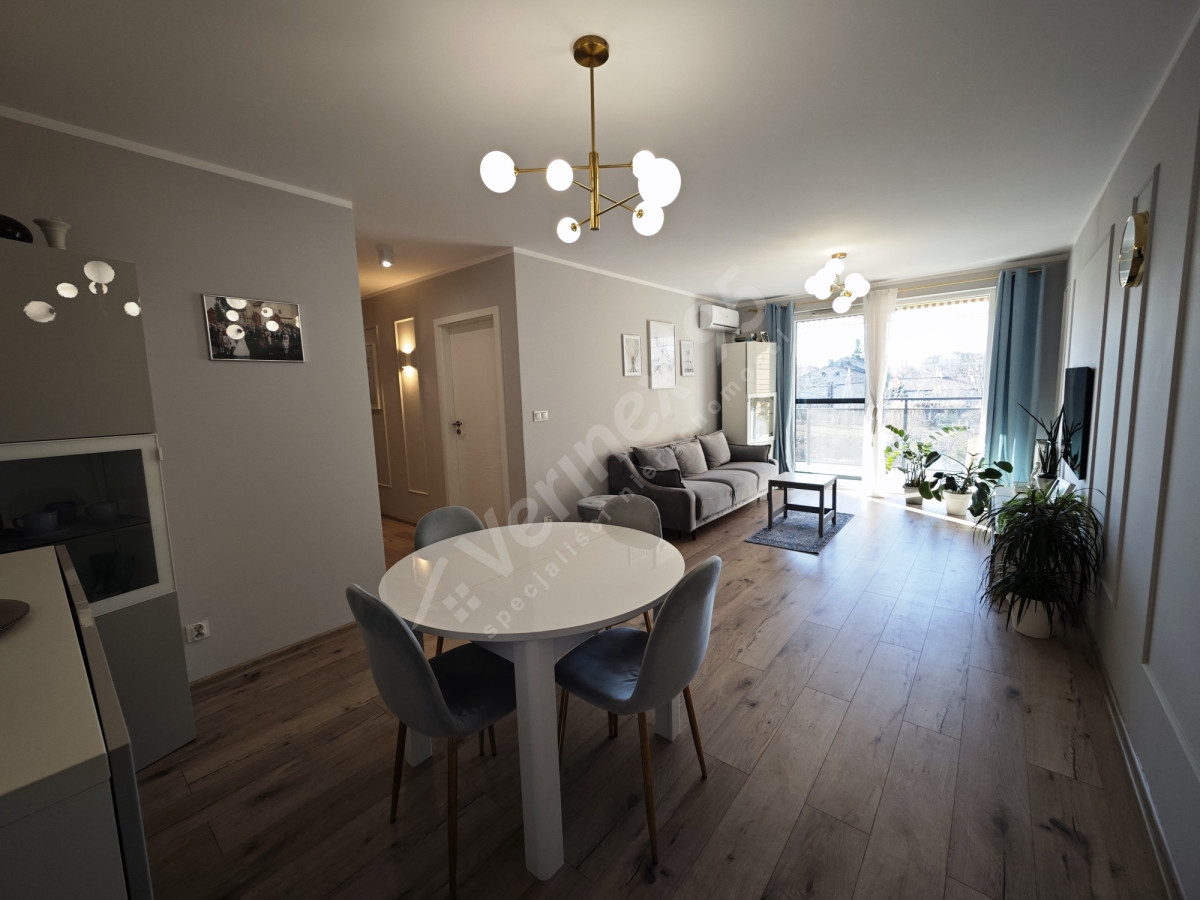 Apartament jest jasny, przytulny i bardzo funkcjonalny. Duże okna z ekspozycją południowo-zachodnią zapewniają doskonałe doświetlenie wnętrza przez cały dzień.