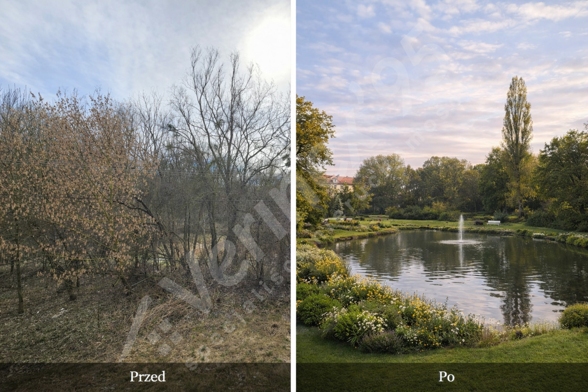 Park stanowiący wyjątkowe otoczenie dla części usługowej oraz dodatkowy walor dla projektu mieszkaniowego.