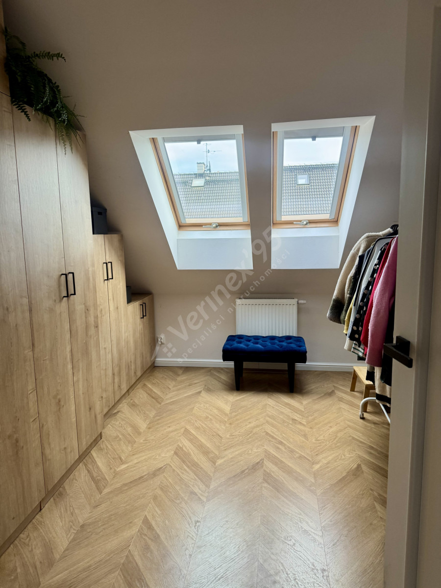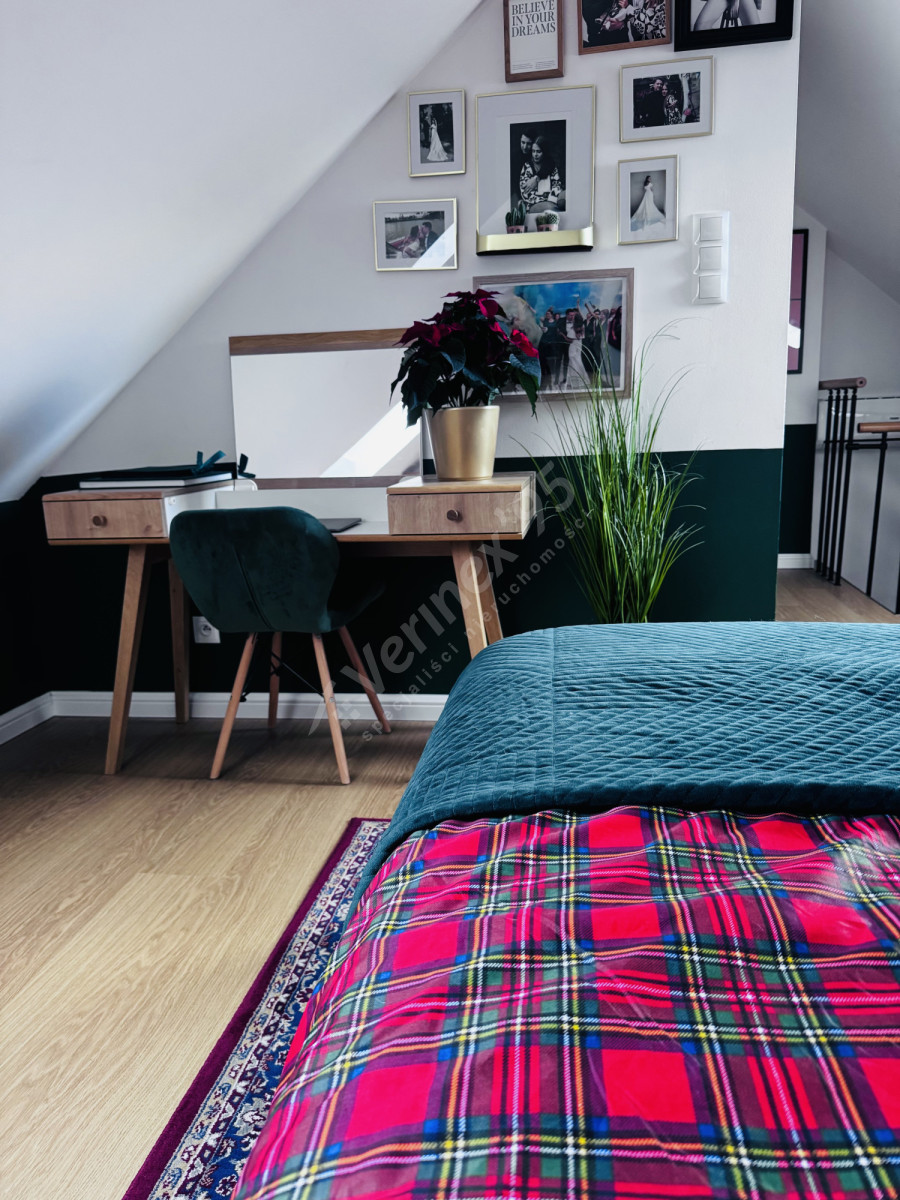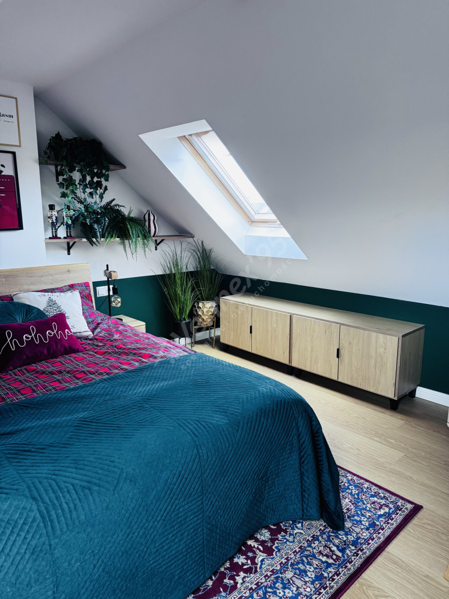 - na drugim poziomie znajduje się przestronna sypialnia z strefą relaksu w postaci